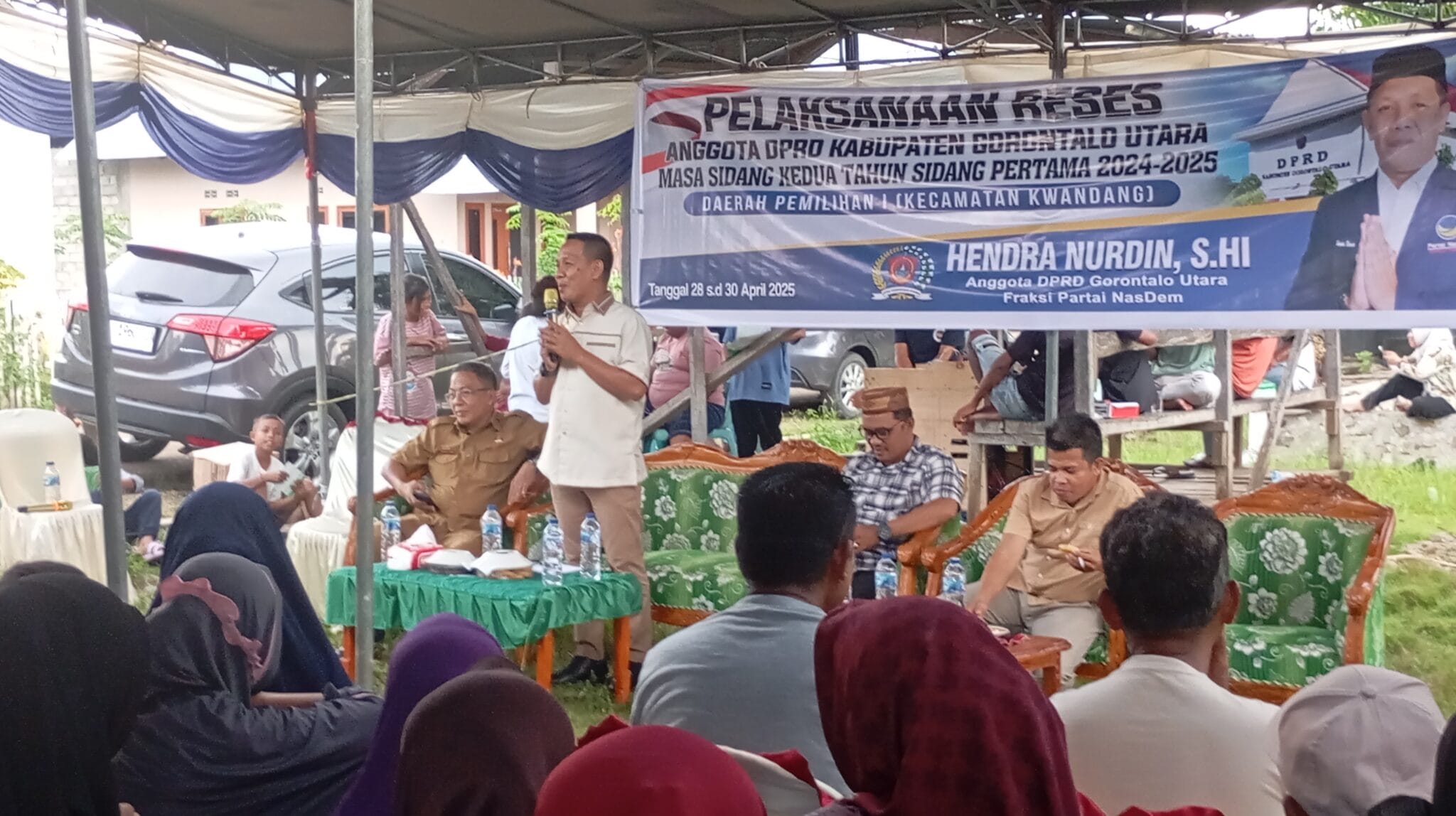 LENSA.TODAY., (GORUT) – Anggota DPRD Kabupaten Gorontalo Utara dari Partai NasDem, Hendra Nurdin, melaksanakan kegiatan reses masa sidang kedua tahun sidang pertama 2024–2025 di Dusun Hulapa, Desa Bulalo, Kecamatan Kwandang, Selasa (29/4).
