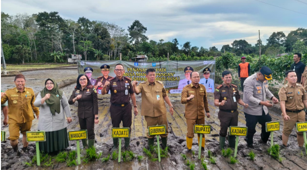 LENSA.TODAY, -(BANGKA TENGAH)- Komitmen memperkuat ketahanan pangan daerah ditunjukkan oleh Kejaksaan Negeri Bangka Tengah melalui kegiatan penanaman padi di Desa Namang, Kabupaten Bangka Tengah, Senin (20/4/2026).