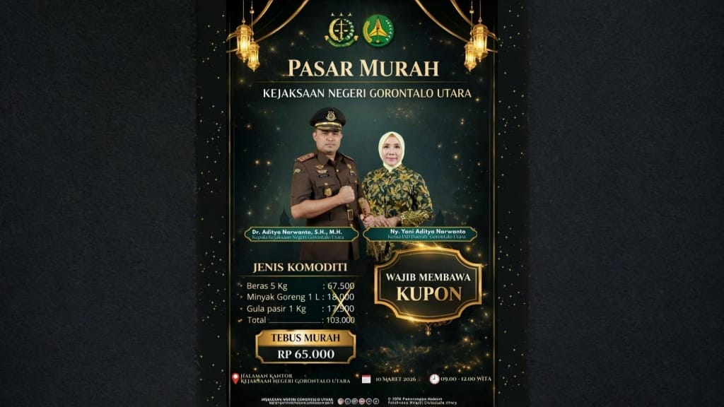 Pasar murah tersebut akan dilaksanakan pada Selasa, 10 Maret 2026, bertempat di halaman kantor Kejaksaan Negeri Gorontalo Utara, mulai pukul 09.00 hingga 12.00 WITA.