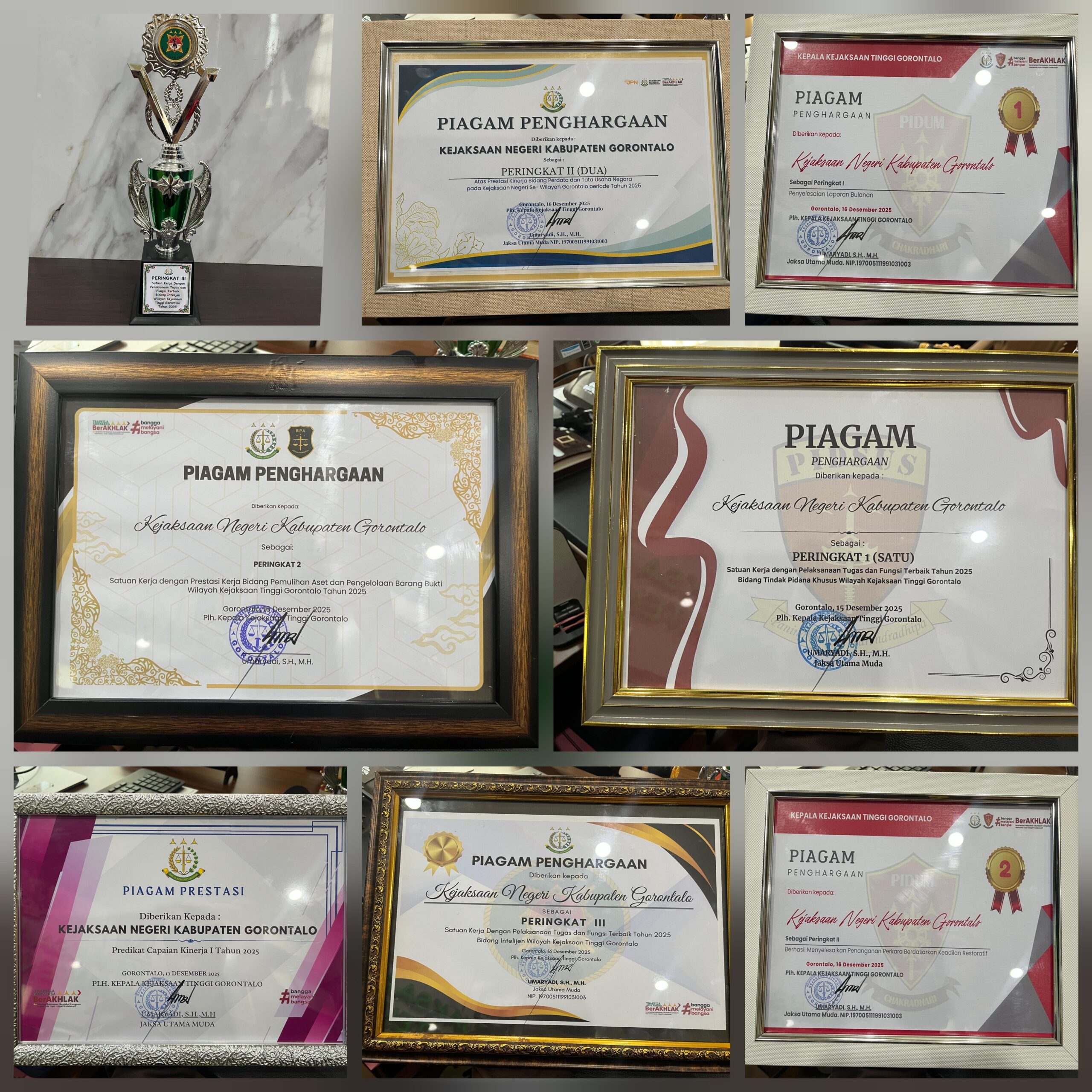 Rekor penghargaan terbanyak ini menjadi simbol keberhasilan kolektif seluruh jajaran dalam membangun kinerja yang solid, disiplin, dan berorientasi pada hasil. Tidak hanya kuat dalam penegakan hukum, Kejari Kabupaten Gorontalo juga menunjukkan keunggulan dalam tata kelola organisasi, pengawasan internal, administrasi, serta pelayanan hukum kepada masyarakat.
