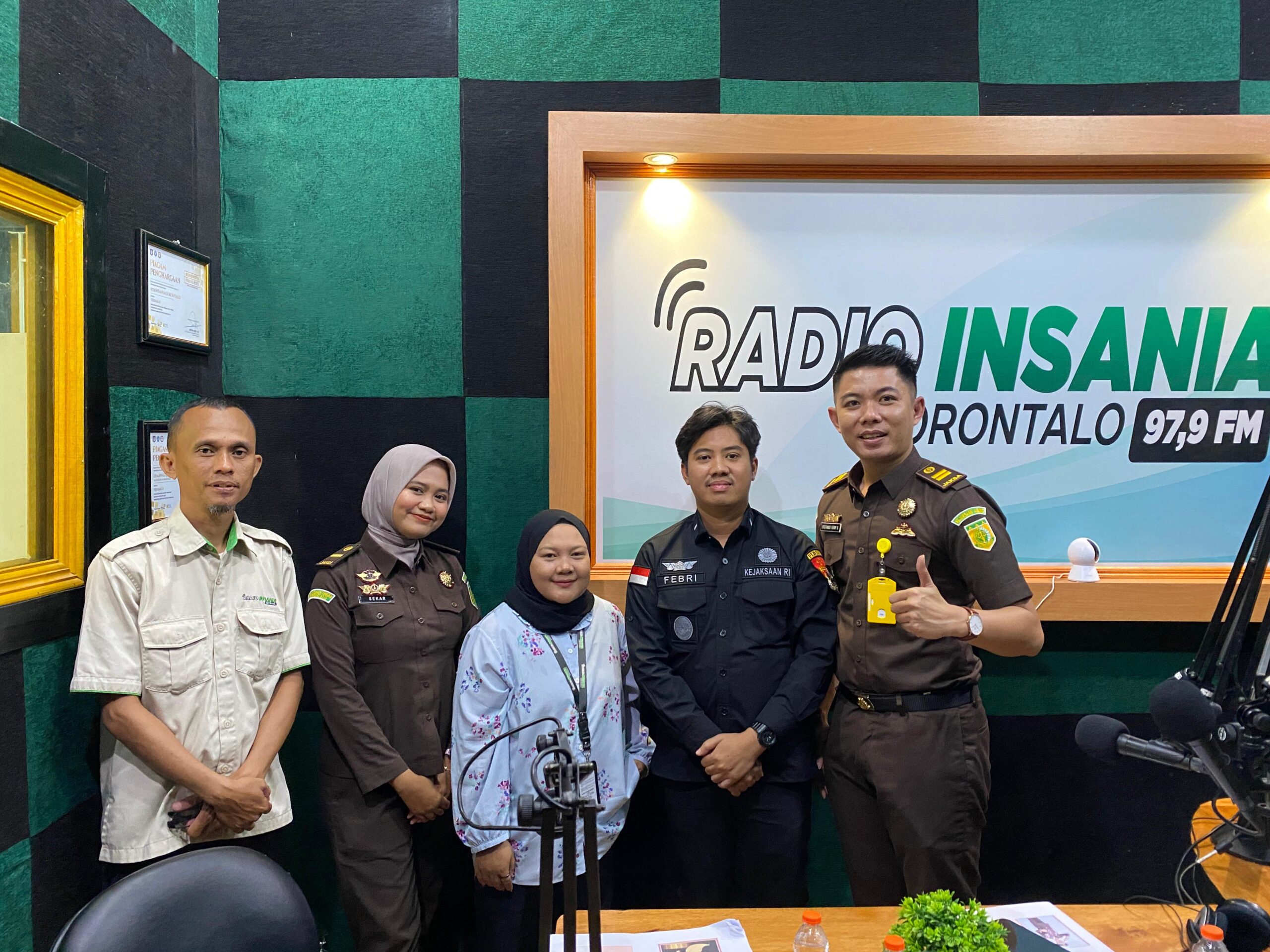 LENSA.TODAY, -(KABGOR)- Memperingati Hari Anti Korupsi Sedunia (HARKODIA) 2025, Kejaksaan Negeri Kabupaten Gorontalo menghadirkan siaran edukatif khusus di Radio Insania Gorontalo 97,9 FM, Rabu (10/12/2025). Dengan mengusung tema “Berantas Korupsi untuk Kemakmuran Rakyat”, program ini menjadi ruang dialog yang menyajikan perspektif hukum, sosial, dan ekonomi dalam upaya pemberantasan korupsi.