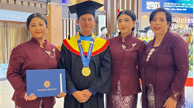 “Pada semester keempat, saya mendapat penugasan di Papua, yang tentu saja menyulitkan mobilitas akademik. Namun, dukungan para dosen dan sivitas akademika UNAIR sangat berarti dalam menjaga semangat dan konsistensi saya dalam menyelesaikan studi,” ujarnya.