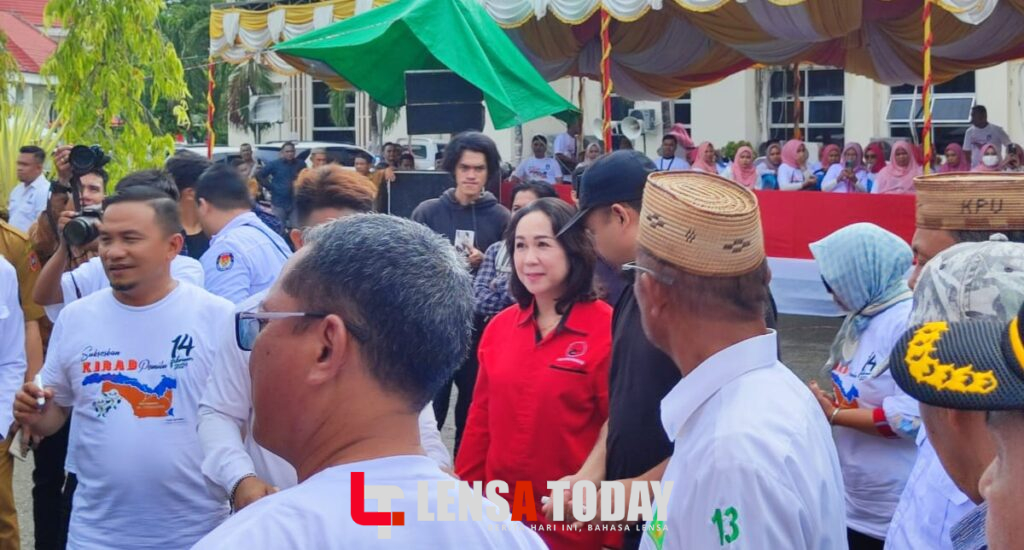 LENSA.TODAY, -(GORUT)- Ketua Dewan Perwakilan Rakyat Daerah (DPRD) Kabupaten Gorontalo Utara, Deisy Sandra Maryana Datau menghadiri pelepasan bendera Kirab Pemilu di Kabupaten Gorontalo Utara.
