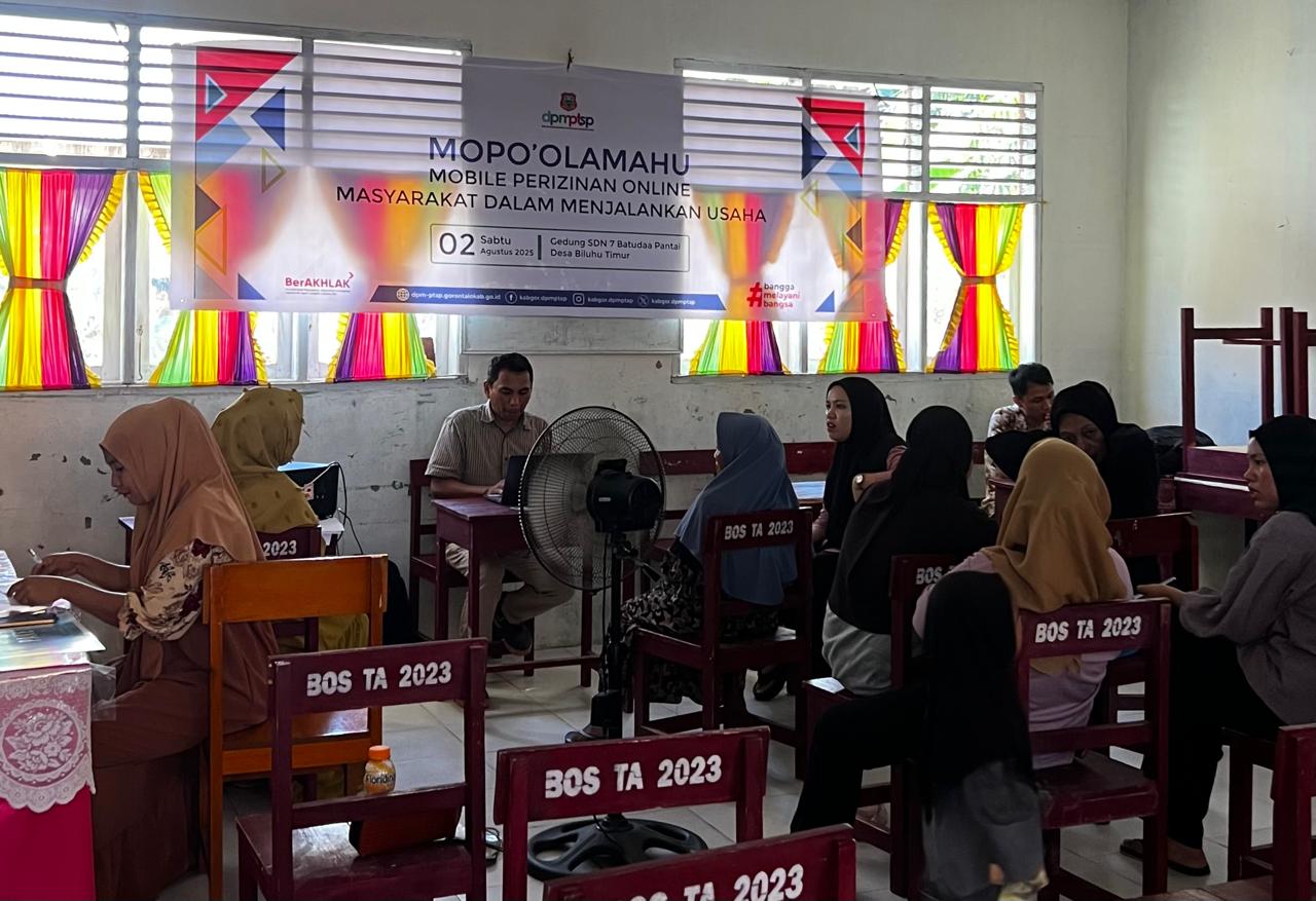 LENSA.TODAY, -(KAMPUS)- Sebagai bentuk optimalisasi ekonomi daerah, khususnya di Desa Biluhu Timur, pada hari Sabtu, tanggal 2 Agustus 2025, bertempat di salah satu ruang kelas SDN 7 Batudaa Pantai, telah dilaksanakan program pendampingan pendaftaran Nomor Induk Berusaha (NIB) yang diselenggarakan oleh tim Kuliah Kerja Nyata (KKN) bekerja sama dengan Dinas Penanaman Modal dan Pelayanan Terpadu Satu Pintu (DPMPTSP) Kabupaten Gorontalo.