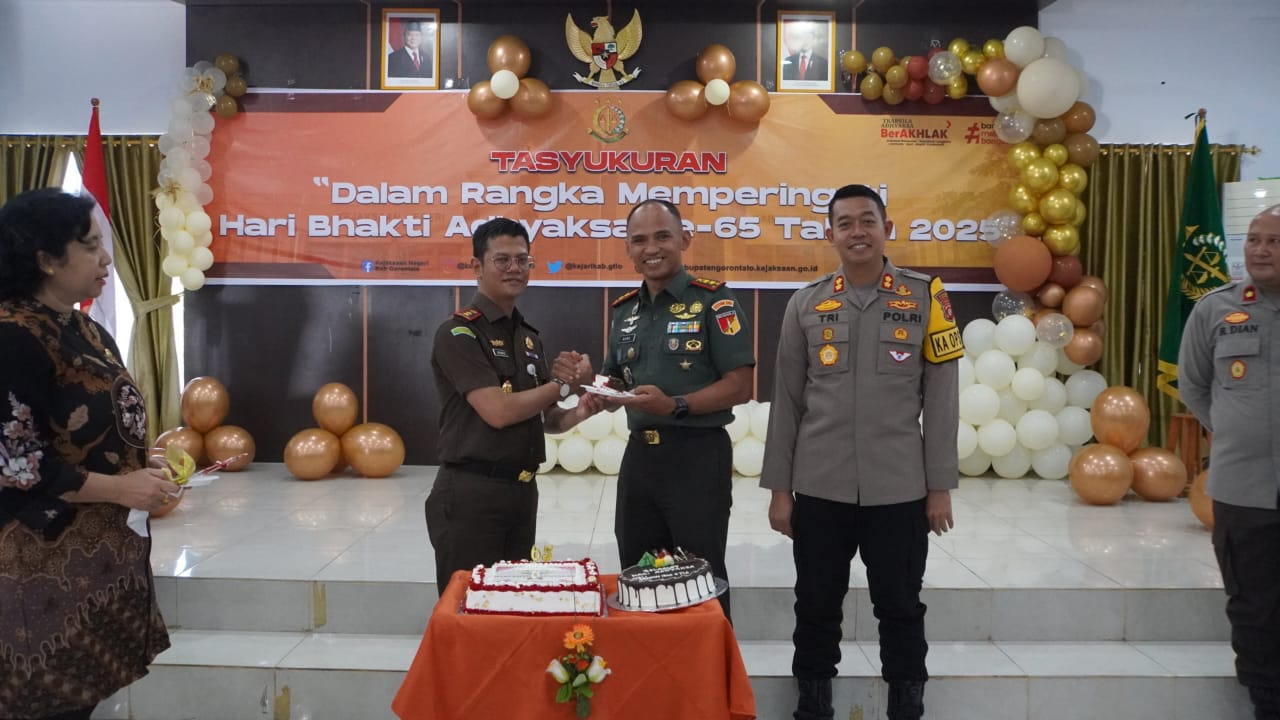 LENSA.TODAY, -(GORONTALO) Dalam suasana yang penuh khidmat dan makna, Kejaksaan Negeri Kabupaten Gorontalo menggelar Tasyakuran Hari Bhakti Adhyaksa ke-65, Selasa (23/7/2025). Bertempat di aula utama kantor kejaksaan, acara ini tak hanya menjadi perayaan seremonial, namun juga sebuah refleksi mendalam atas perjalanan panjang institusi Adhyaksa dalam menegakkan hukum dan keadilan di tanah air.